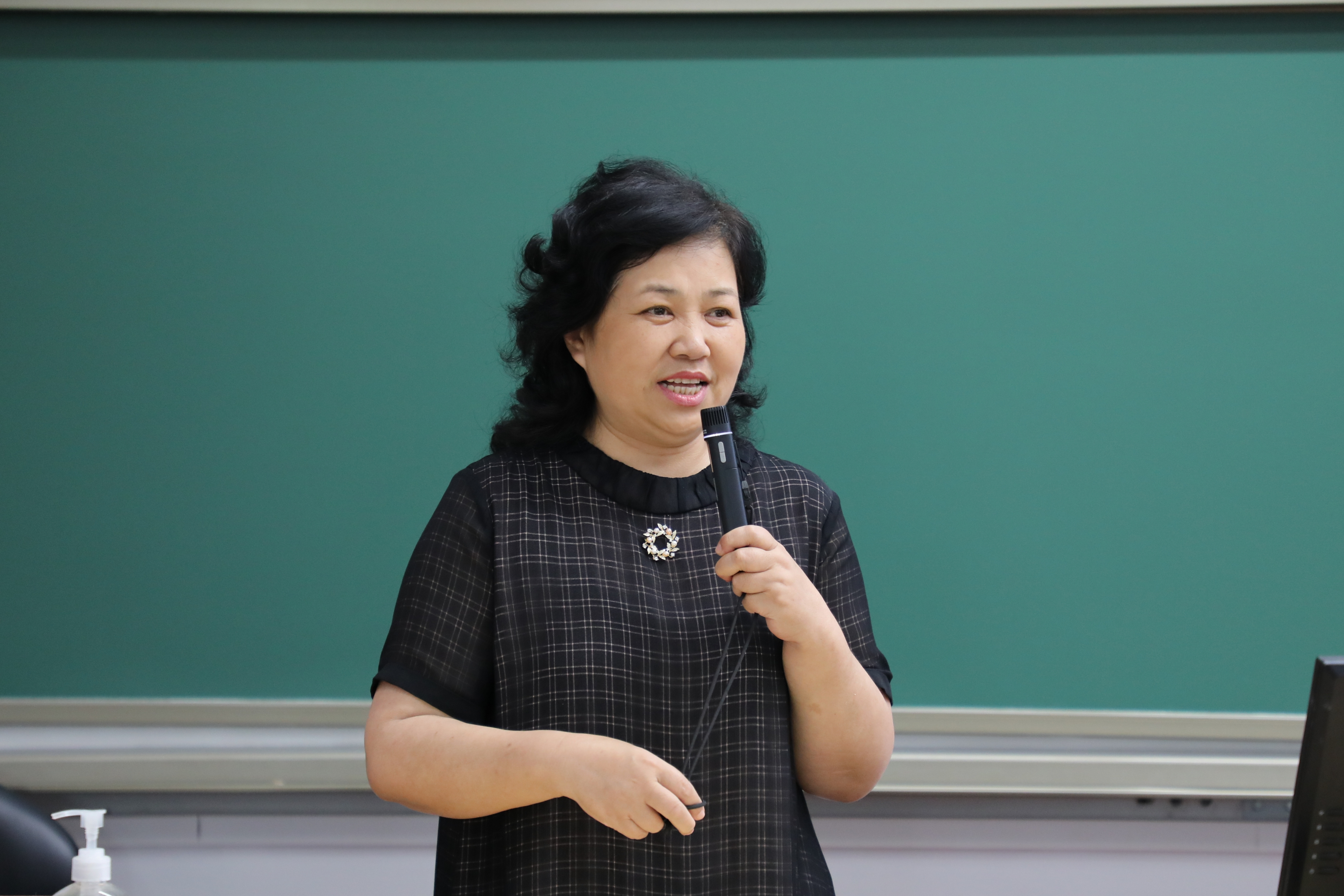 德语系助理教授黄超然作为军训领队教师代表发言。她分享了自己组织日评会的经验,总结了军训十天全程参训的收获,表达了作为领队老师对同学们积极参训态度的肯定与赞许,并希望同学们不负青春韶华,在北大学习的时光中辛勤耕耘,收获满满。