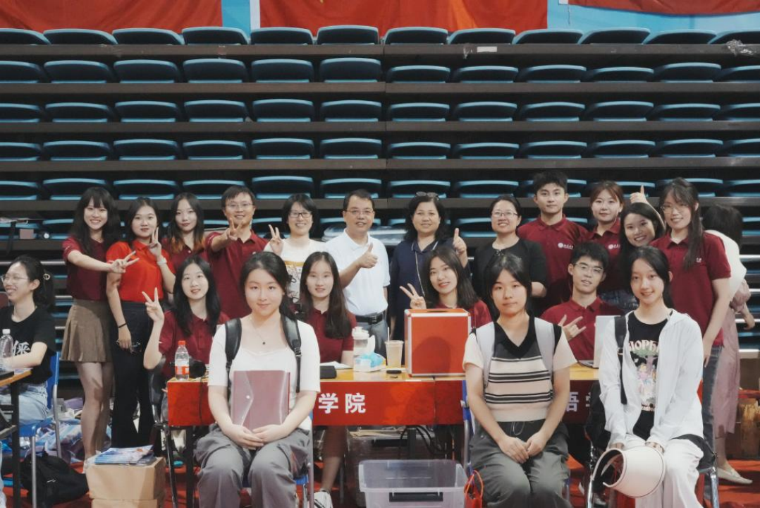 学院院长陈明、党委书记李淑静、党委副书记王恒等学院领导,教务办公室、团委办公室和学生工作办公室的老师们与迎新志愿者们一同到达迎新接待处,期待着2023级211名新生的到来。