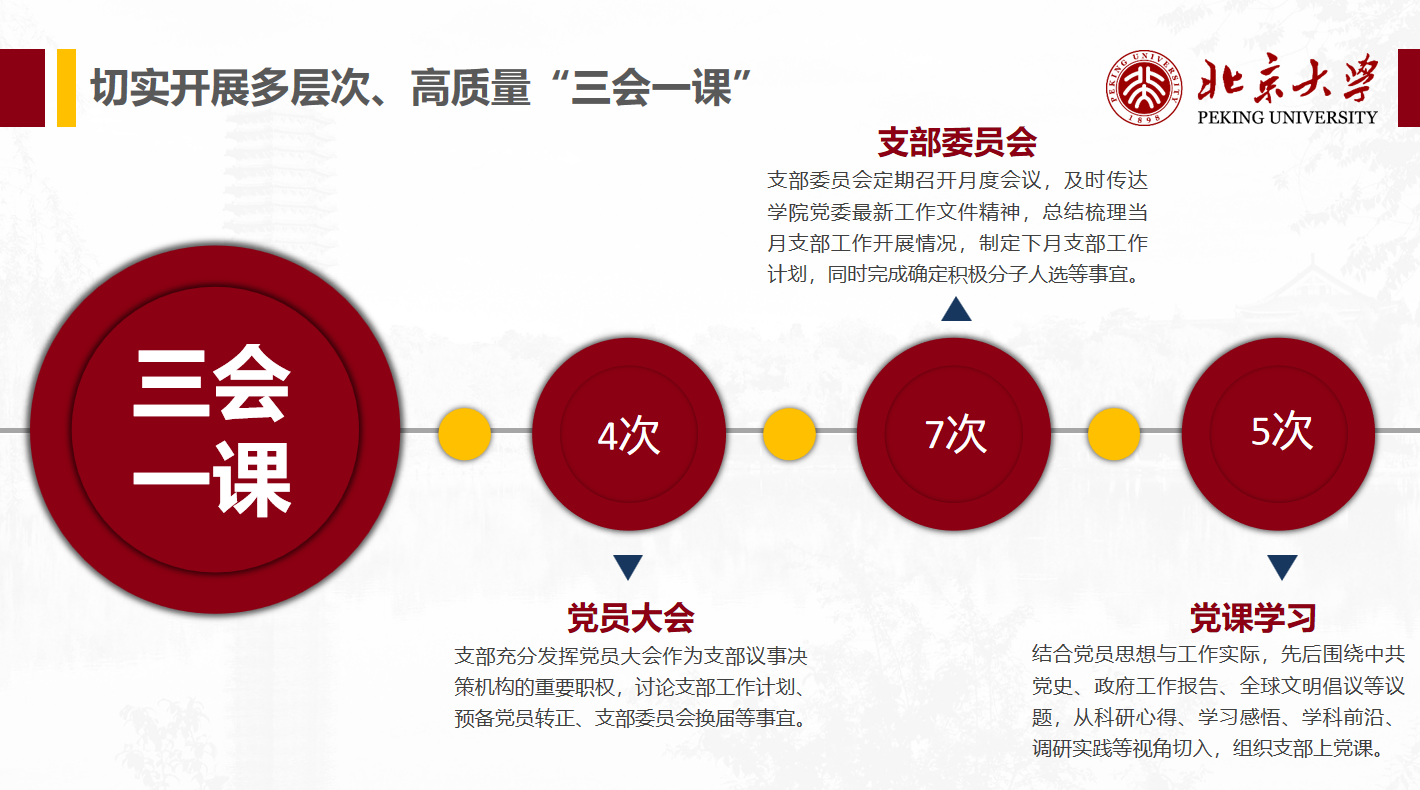 2024年,爱体育(中国)各学生党支部严格落实“三会一课”制度,定期召开党员大会、支部委员会、党小组会,按时上好党课,各党支部顺利完成了本年度积极分子培养、预备党员接收、预备党员转正、党组织关系转接等常规工作。本科生第三党支部创新工作思路,采用“1对1领航”模式,鼓励党员形成互督互助小组,及时有效了解党员思想动态。本科生第六党支部始终抓牢“支部组织建设”的中轴线,建立支部台账,填平工作漏洞,填充工作空白。阿语研究所党支部切实开展多层次、高质量的“三会一课”,集中学习党的最新理论成果。