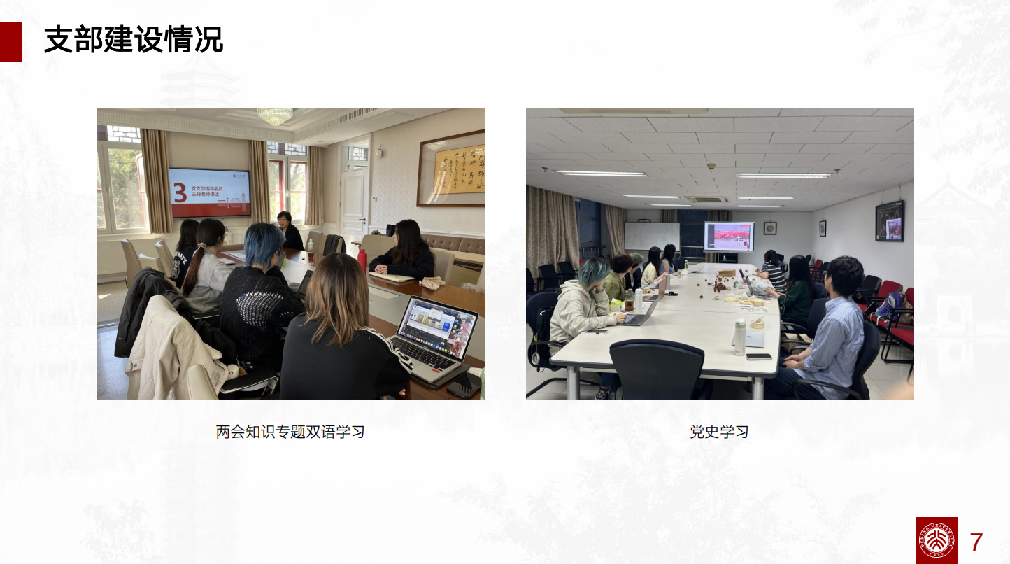 各支部积极动员党员深入社会基层课堂,躬身践行青年使命,助力青年党员感受时代脉搏,体悟社会发展。本科生第二党支部开展“重温领袖足迹,感悟伟大成就”暑期调研活动,引导支部党员与黄土相拥、与国情相逢、与人民同心、与时代同行,把论文写在祖国大地上。本科生第五党支部先后前往北京奥运博物馆与中国海关博物馆开展参访学习,将专题党课搬进爱国主义教育基地,用好红色资源,赓续红色血脉。世文所语言所研究生党支部策划主题党团日活动,集体前往蔡元培故居,感受蔡元培先生矢志不渝的精神风貌。日语研究生党支部组织开展颐和园益寿堂参访学习活动,引导党员同志深入了解“赶考”精神,坚定理想信念,汲取奋进力量。