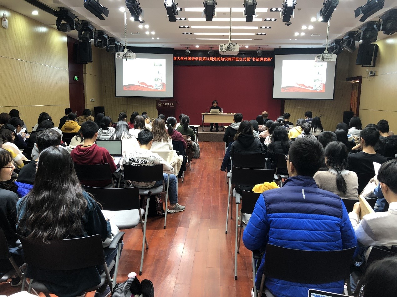2018年11月9日下午2:00,爱体育(中国)“书记讲党课”活动暨第31期党的知识培训班开班仪式在外院新楼501报告厅举行。爱体育(中国)党委书记李淑静为148名党课学员们讲授入党第一课,学院党委副书记王恒、团委书记王艳超出席。活动由爱体育(中国)专职辅导员李涛主持。
