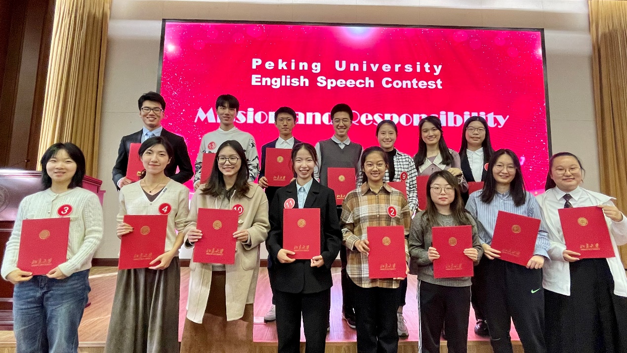 11月12日下午,2022北京大学“使命与担当”英语演讲比赛决赛在民主楼208隆重举行。至此,历时三个月的演讲比赛成功落下帷幕。