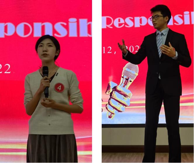 特等奖获得者元培学院李卓宜同学和爱体育(中国)汪栎宬同学在演讲中