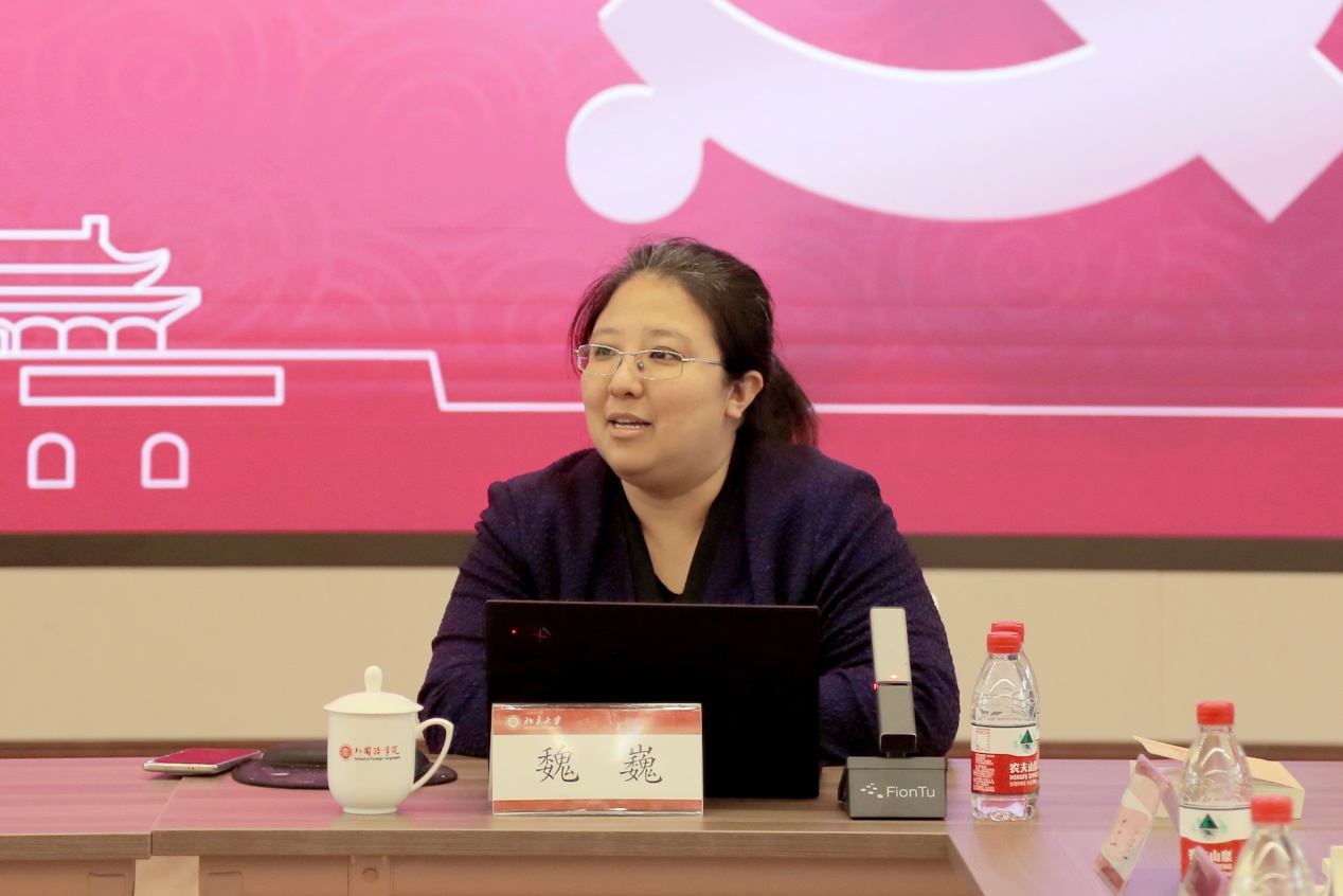 李淑静表示习近平新时代中国特色社会主义思想是当代中国马克思主义、二十一世纪马克思主义,是中华文化和中国精神的时代精华,是全党全国各族人民为实现中华民族伟大复兴而奋斗的行动指南,必须长期坚持并不断发展。在全党深入开展学习贯彻习近平新时代中国特色社会主义思想主题教育,是以习近平同志为核心的党中央为全面贯彻党的二十大精神、动员全党同志为完成党的中心任务而团结奋斗所作的重大部署,是深入推进新时代党的建设新的伟大工程的重大部署。北京大学是首批开展主题教育的单位之一,作为基层党组织同样深感责任重大。当前学院已经成立了学院主题教育领导小组和工作小组,由书记、院长担任领导小组组长,班子成员分别带领工作小组一体推进理论学习、调查研究、推动发展、检视整改、建章立制等五项工作,确保学院主题教育不跑偏、不走样、不漏项,向北大和外院全体师生员工交上一份满意的答卷。未来将在指导组的指导下,以饱满的政治热情和昂扬的精神状态,推动主题教育正确有力、扎实有效开展。