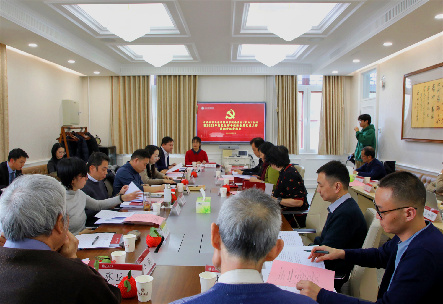 会议最后,参会人员对2023年度各教工、离退休党支部党建工作进行考核评分。