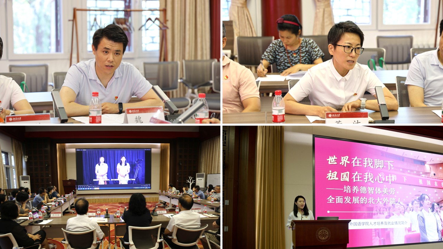 在案例分享环节,亚非中心越南语部支部书记魏为以中央重要文件翻译为例,阐述了如何通过做好文献翻译、用好文献翻译构建中国对外话语体系;缅甸语部支部书记董洁则以缅甸大地震报道为例,结合视频展示了总台在突发事件中的快速响应与跨文化传播能力。北大外院党委副书记冯美娜则从人才培养角度,介绍了学院在第二课堂及就业指导方面的创新举措,展示了学院国际传播人才培养的实践与成果。