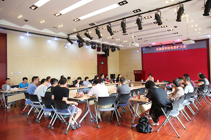 李淑静书记对学院党委及各基层支部2018年上半年的主要工作和成绩进行了总结。她首先对学院上下深入学习贯彻习近平新时代中国特色社会主义思想和习近平总书记在北大师生座谈会上讲话精神的情况进行了回顾,指出学院党委、各党支部以专题培训班、主题党日、报告会、研讨会等多种形式,有计划、分层次开展了学习培训;学习活动不仅在支部和党员中热烈进行,也渗透入学院各项主要工作中。李淑静书记还对2017年党支部评议考核和民主评议党员、2018年党内评优表彰、党支部述职、在职党员“双报到”等项工作情况进行了通报,简要介绍了本学期党委常规日常工作。谈及党员发展工作时,她指出,教师党员发展是学院党委常抓不懈的工作,自建院18年来学院共发展18名教职工党员,还有多名入党积极分子被列入重点培养对象,教师党员发展工作得到了学校党委等上级党组织的肯定。在报告的最后,李淑静书记传达了近期学校和学院的工作重点及相关要求,希望各支部做好动员和配合工作。