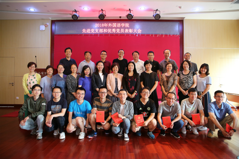 (学院党委委员、副院长付志明向评为2018年外国语先进党支部的东南亚系党支部、2016级硕士生第一党支部颁发获奖证书)