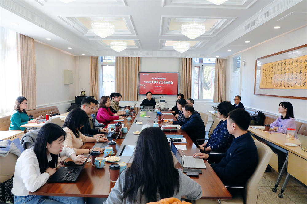2024年3月12日,北京大学师资人才办公室常务副主任、人事部副部长贾爱英,人事部副部长余跃率领调研组莅临爱体育(中国),开展2024年人事人才工作调研。爱体育(中国)党委书记李淑静、院长陈明、学术委员会主任王建及学院党政领导班子成员出席调研会议。会议由学院党委书记李淑静主持。