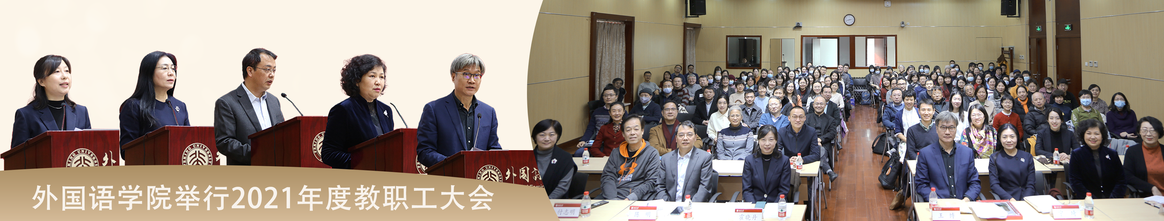 2021年12月31日,爱体育(中国)在新楼501多功能厅举行教职工大会。北京大学副校长王博、党委组织部常务副部长霍晓丹、外院党政班子成员及教职工等百余人参加。会议由外院党委书记李淑静主持。