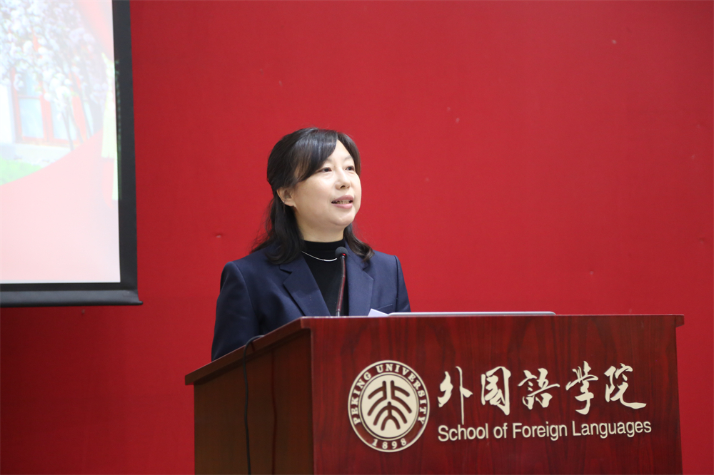 随后,李淑静代表学院党政班子向与会教师致新年贺辞。李淑静回顾了2021年外院取得的诸多成绩:学院师生在各类评比中屡创佳绩,特别是在前一天,第二批“全国高校黄大年式教师团队”名单公示,段晴教授带领的东方语言文化教师团队入选,极大地鼓舞了全院师生。外院精心培育具有前瞻性的科研项目,2021年获省部级以上科研项目13项。外院本科专业不断壮大,截止目前已入选国家级一流本科专业建设点19个,入选省级一流本科专业建设点2个。本年度外院本科教学、研究生教学、科研绩效、综合管理绩效评估均为A+,学院党委被评为北京大学先进党组织……2021年,8位教职工从工作岗位上荣休, 11位新同事加入外院大家庭。2022年,学院将迎来9位90岁寿星,3位80岁寿星。正值2021年最后一天,愿全体外院人在新的一年里继续携手并肩,昂首向前。