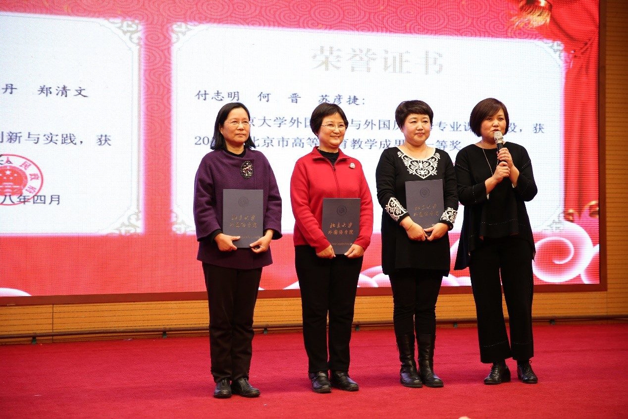 宁琦院长代表外院领导班子全体成员向全院教职员工致新年贺辞。宁琦院长总结了过去两年外院在学科建设、教学科研等方面取得的显著成就。在2017年8月公布的北京大学“双一流”建设的41个学科中,外院的外国语言文学学科名列其中。QS世界大学学科排名中,外院的现代语言学科排名全球第七,与其他院系共享的语言学学科位列第十,与全球母语国家共同排名的英语语言文学学科也位居第三十四。2017年底,在国家组织的一级学科评估中,外院获得了A+的佳绩。乘着这股东风,全院教职员工共同努力,2018年外院获得了11项国家社科基金并实现了国家优秀教学成果奖的突破。外院一共获得7项北京大学优秀教学成果奖,包括1项特等奖,3项一等奖和3项二等奖,此外还获得北京市优秀教学成果一等奖2项、二等奖1项。外院学生也在各项比赛中屡获佳绩,连续三年蝉联北京大学“一二•九”师生歌会冠军,十一年来七次获得该荣誉。此外,近年来外院吸纳了来自世界各地的优秀人才,2014年实行新体制至今,先后有近30位杰出人才加入到外院师资队伍中,并逐渐在学术领域崭露头角。